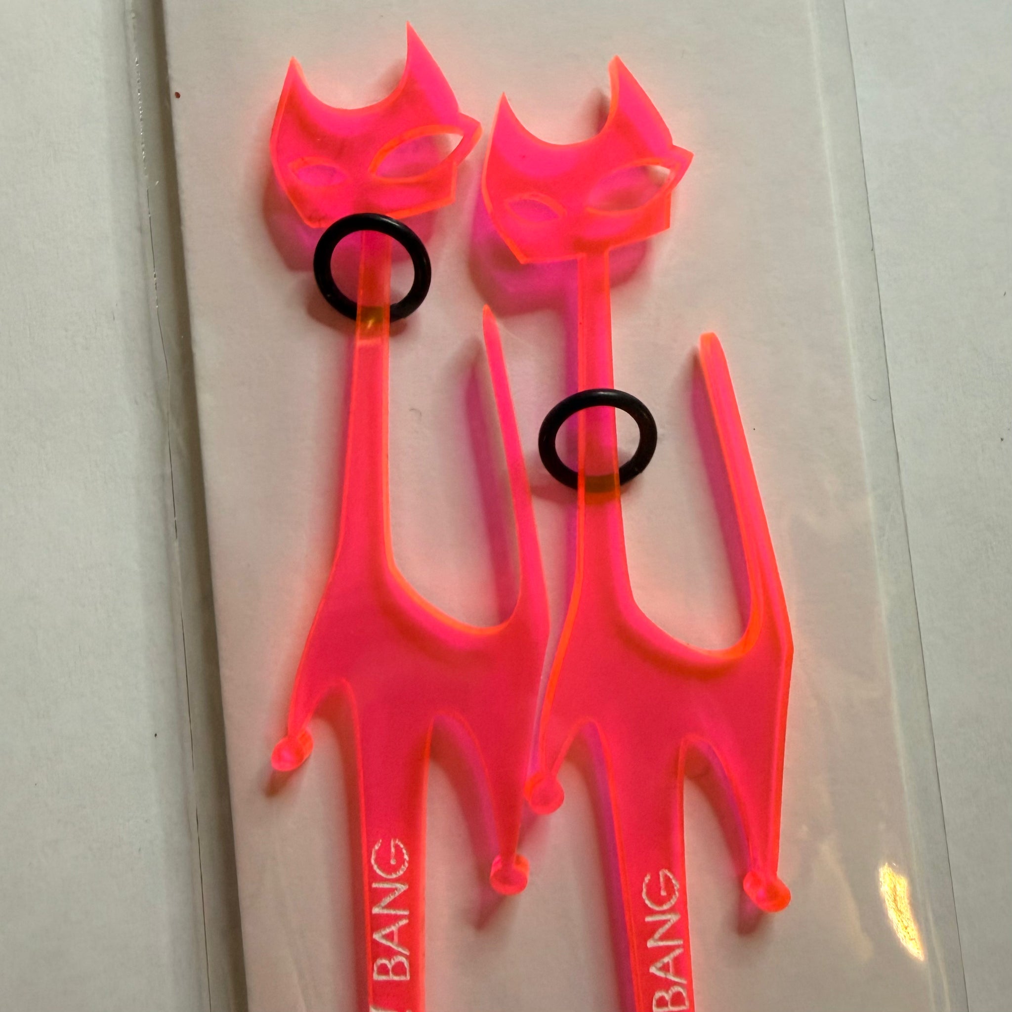 Florescent Pink Cat with Black Collar Swizzle Sticks
