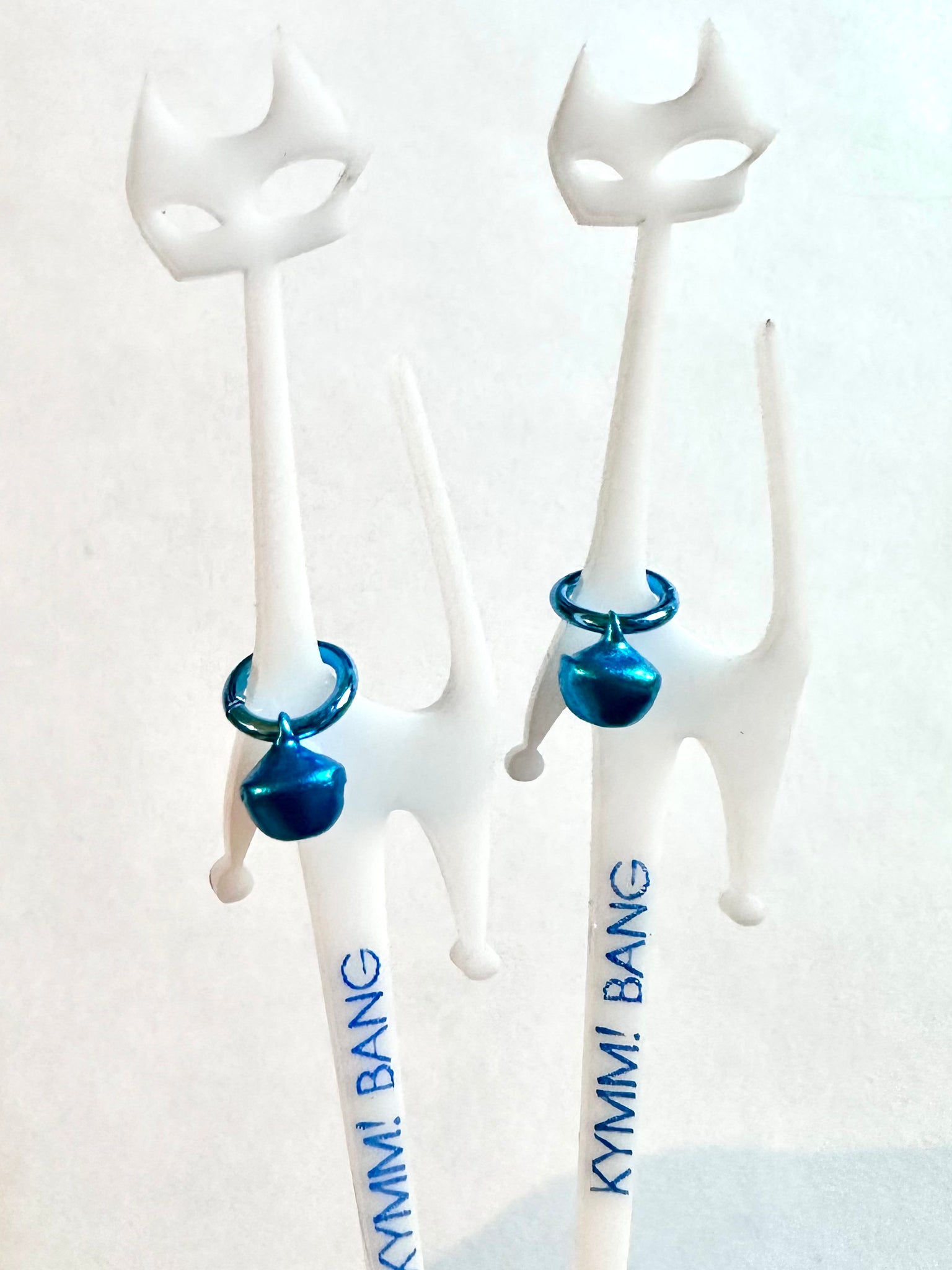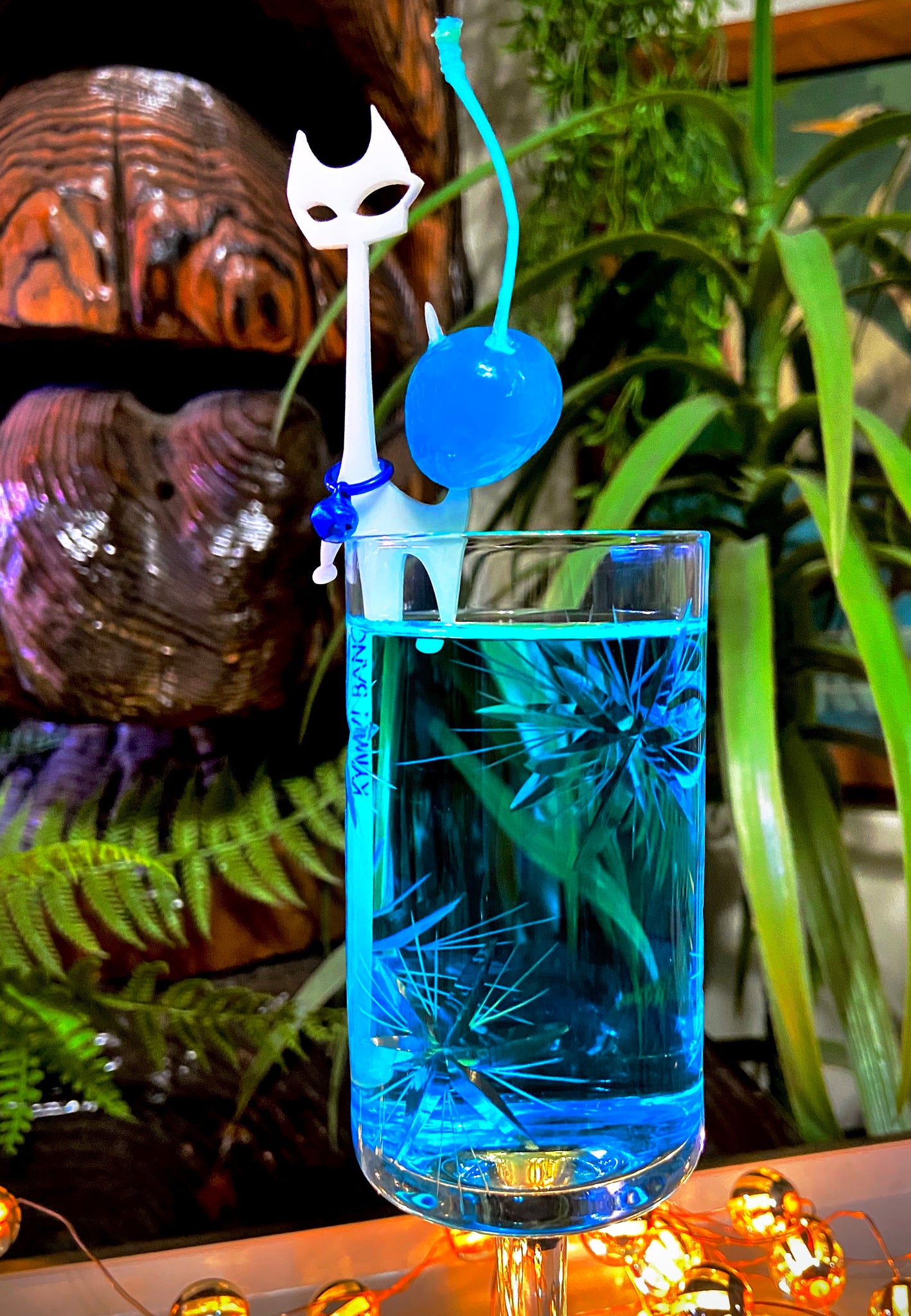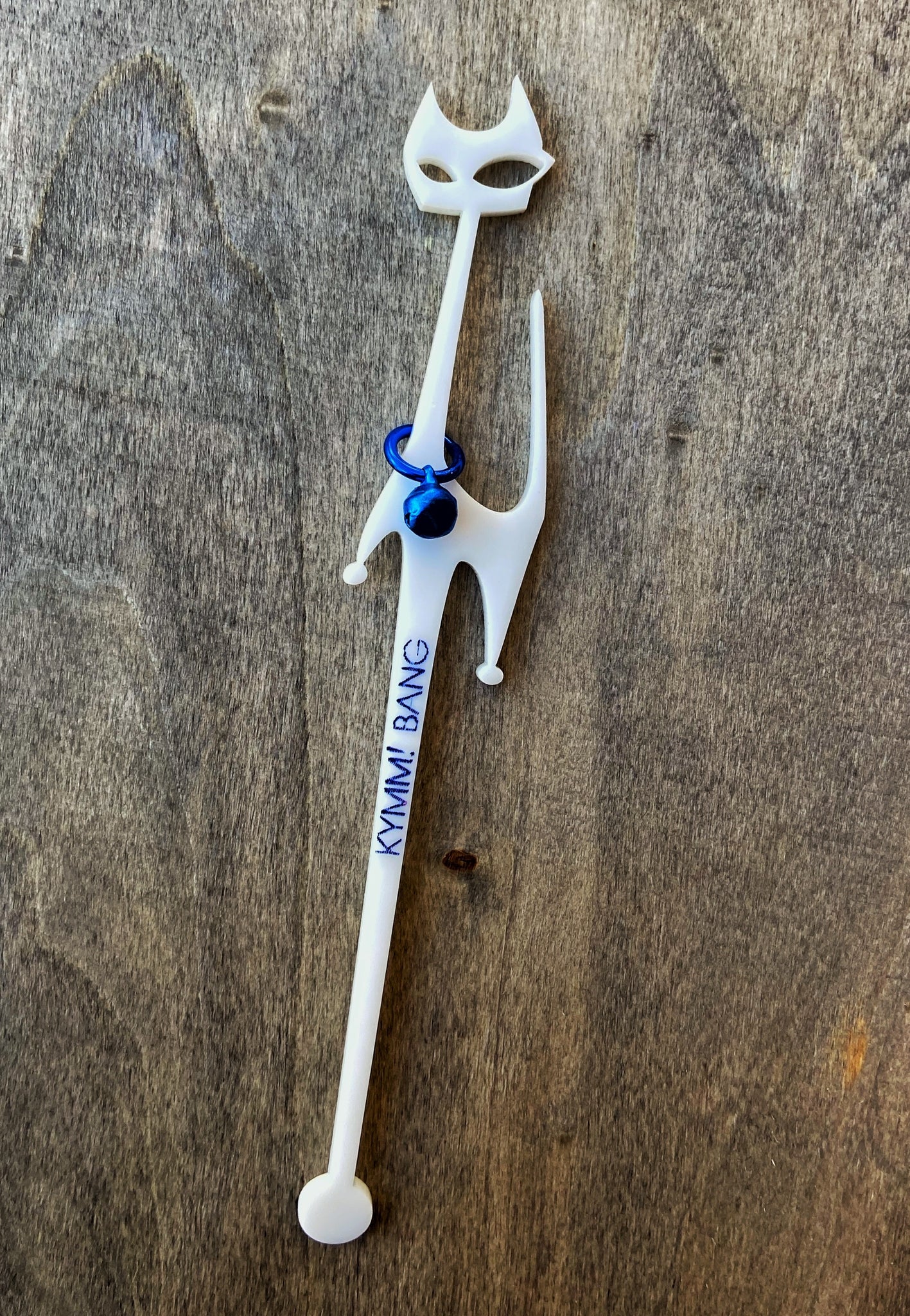 Do you love a festive cocktail? These special edition holiday swizzles need to be in your collection! These are my signature design laser-cut acrylic sticks, and each one is individually finished with hand detailing. They are available in two lengths, mai tai and zombie, and can perch on either side of your glass with her front or back leg. These swizzles are all extra with their blue collars and bells. And their tails can double as a garnish pick!