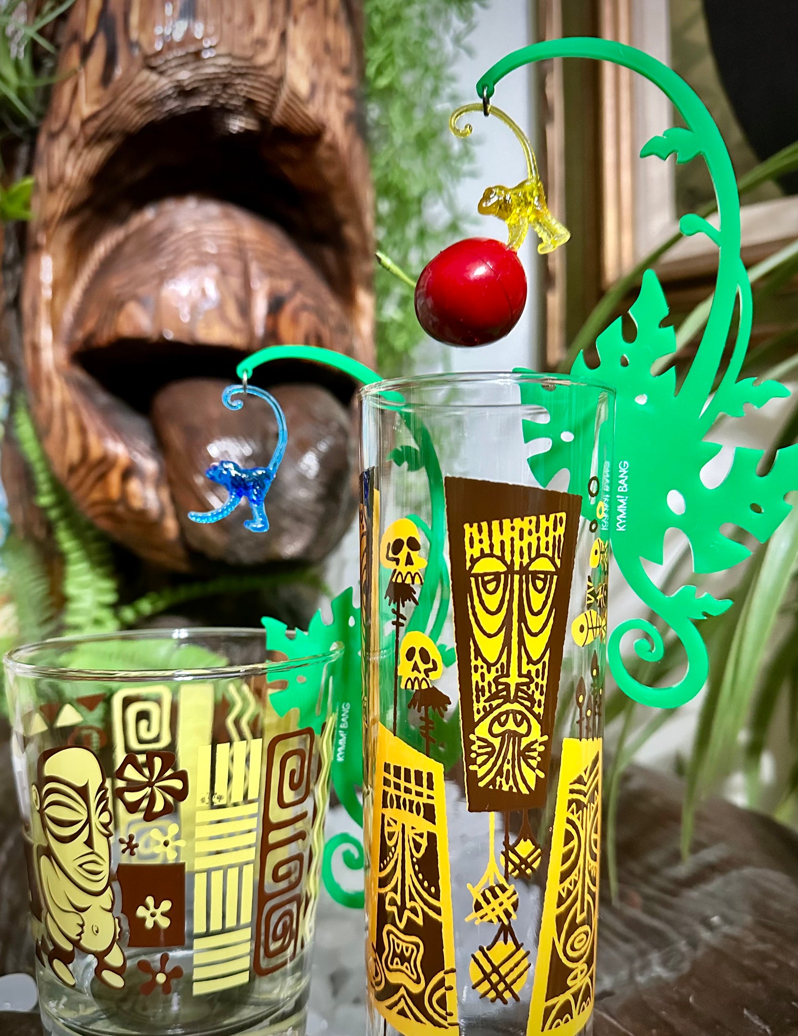 Signature Kymm! Bang jungle monkey garnish clip to jazz up your cocktail (or water) glasses.