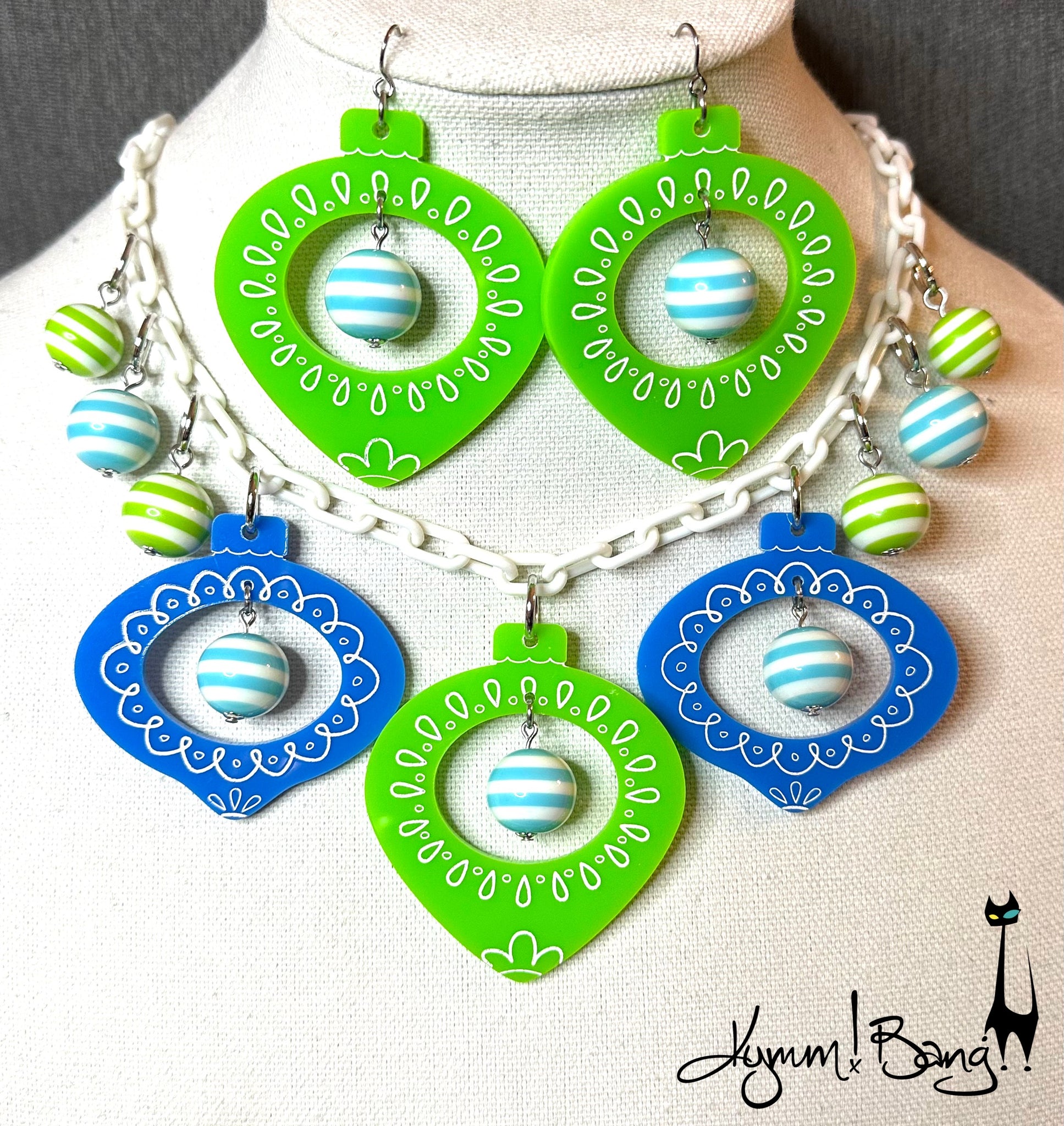 Shiny Brite Ornaments - Necklace & Earrings Set - Blue and Lime
