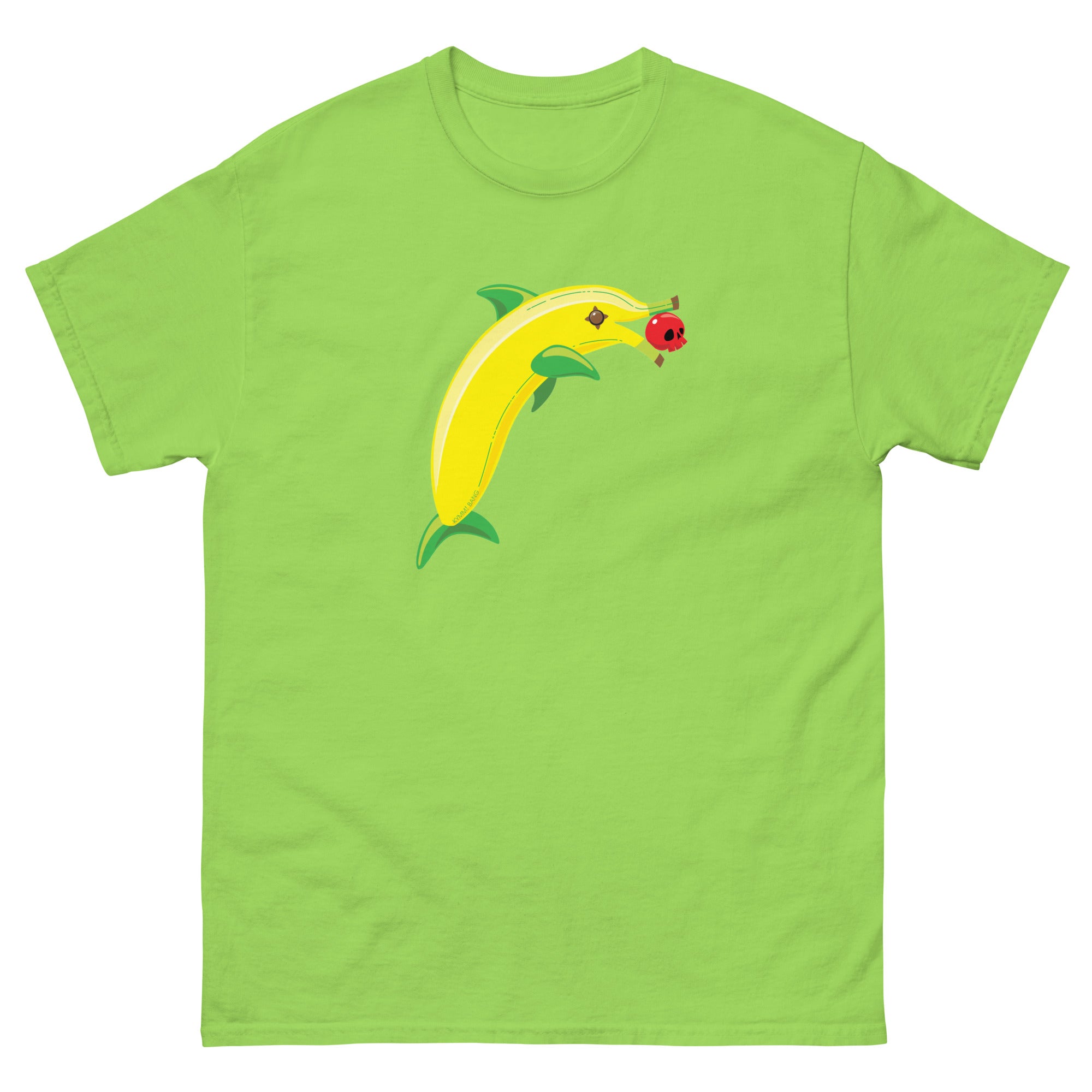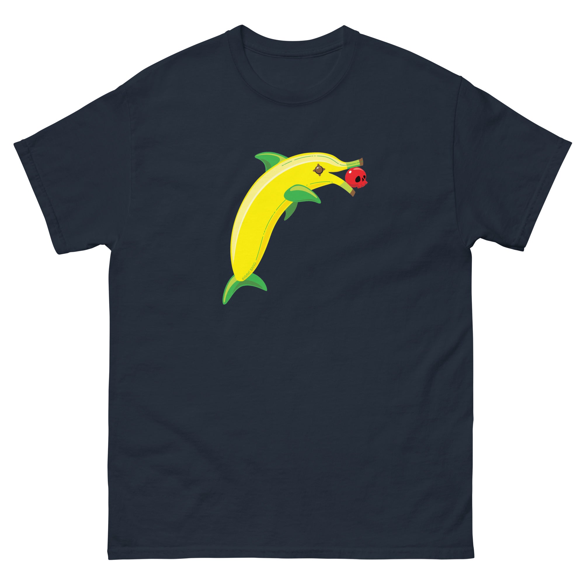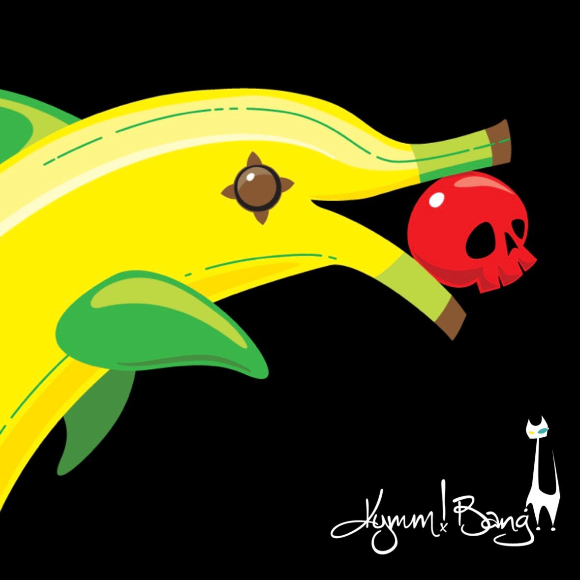 Banana Dolphin unisex T. It's our favorite banana, holding a little skull cherry. Because why wouldn't she be?